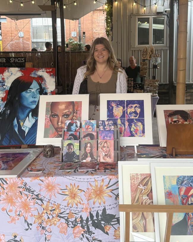 Hi, welcome to my website. I’m Nat Morgan, a designer and artist living in the beautiful Cotswolds area of England. My lifelong passion for all forms of art led me to study Illustration at Cheltenham university, where I fell in love with the area, it’s charming people and where I now call my home. As a child I grew up in a house filled with loud exciting music, introducing me to an eclectic mix of old and new musical performers of all genres. I now combine my love of music in my new designs. I have always enjoyed painting, and I have combined this for my love of music. Therefore, I naturally gravitate towards music and icons, representing them in their prime or era.